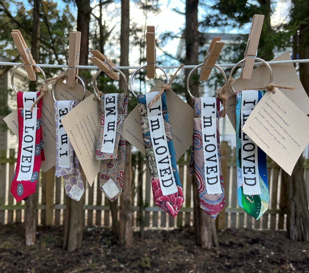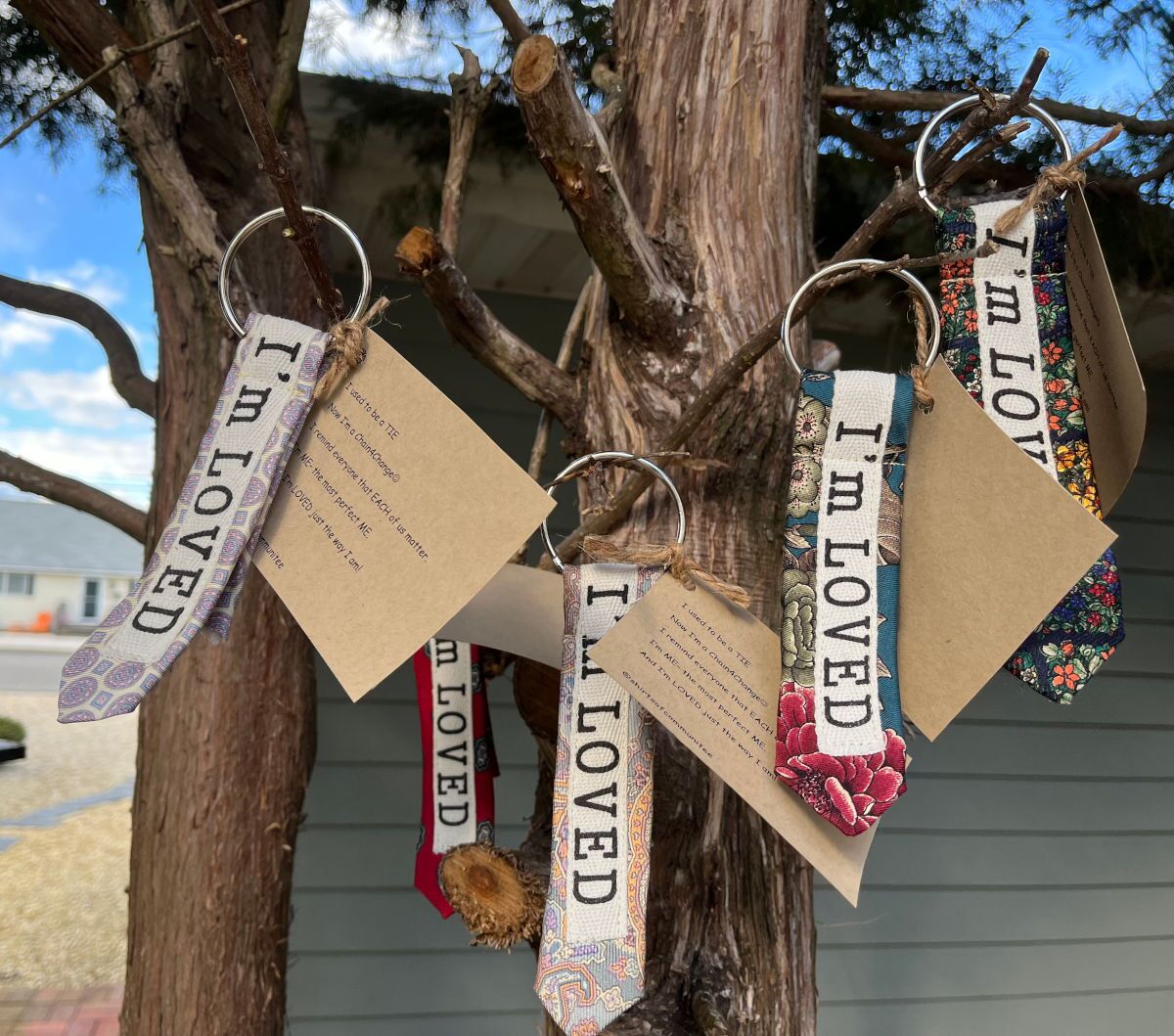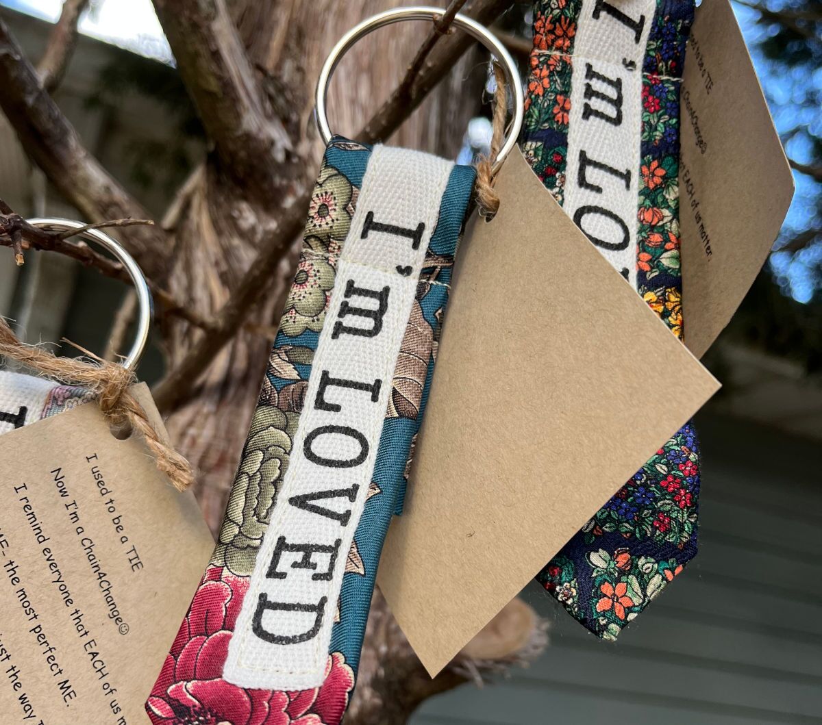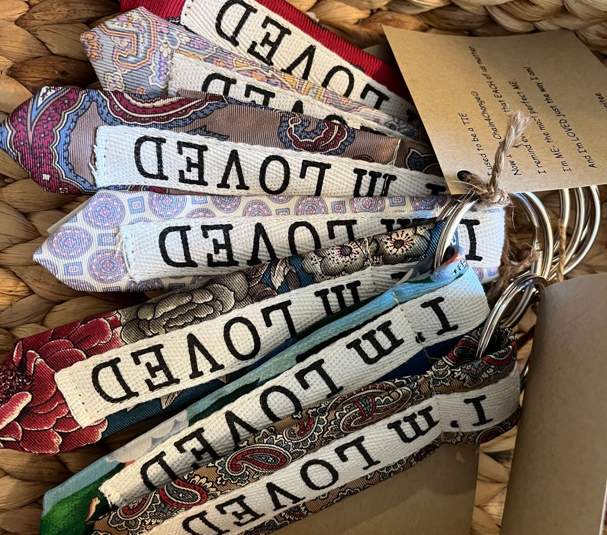 Our Chains 4 Change are recycled ties -given a second life as a keychain. Each chain has a positive saying for you to carry throughout your day.