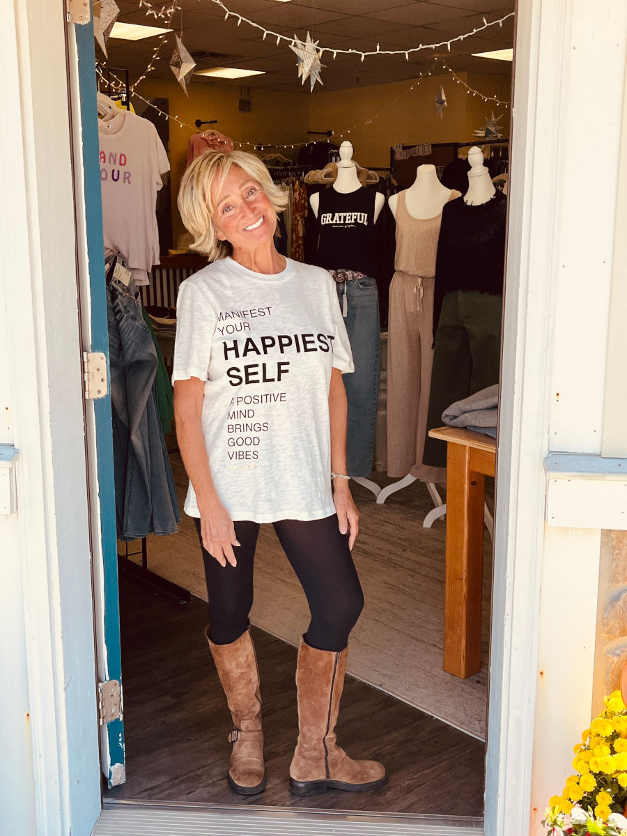 An oversized silhouette with a positive message from you to the world! Manifest your happiest self in this top every day.
